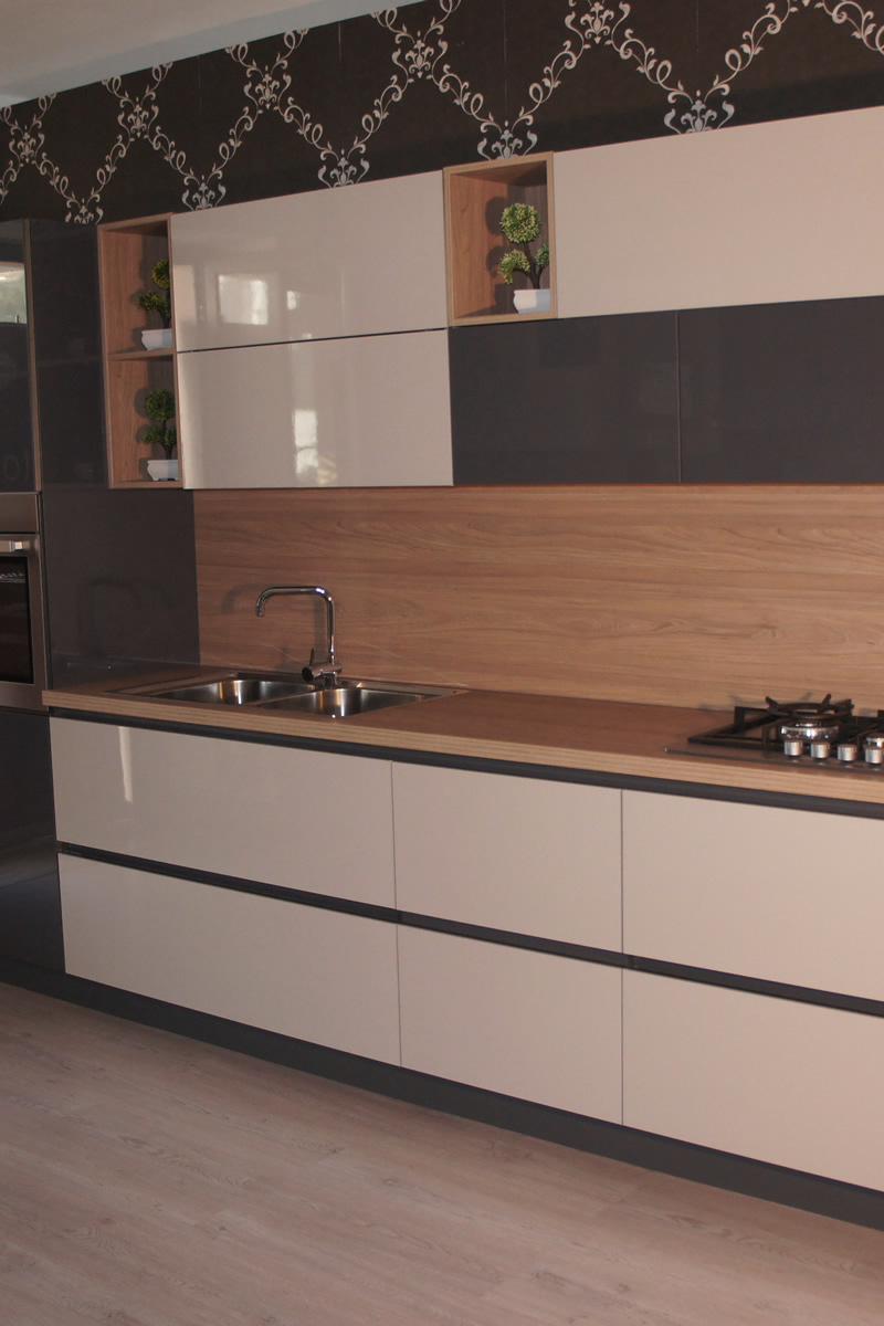 Basi rovere sabbia, pensili e colonne in desert lucido, schienale e colore lava come il top, penisola, gambone e zoccolo colore piombio,forno multifunzione, microonde,lavastoviglie, piano cottura da 75 Eletrolux,lavello filo slim.L 438 P 60/220 H 216.TRASPORTO E MONTAGGIO INCLUSI NEL PREZZO NEL RAGGIO DI 50 KM. NUOVI ARRIVI -